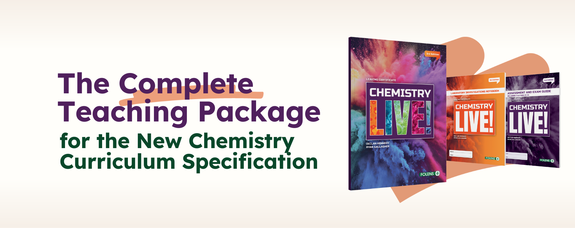 Folens is proud to announce the 3rd edition of Chemistry Live! – the trusted teaching package designed for the new Leaving Certificate Chemistry curriculum.